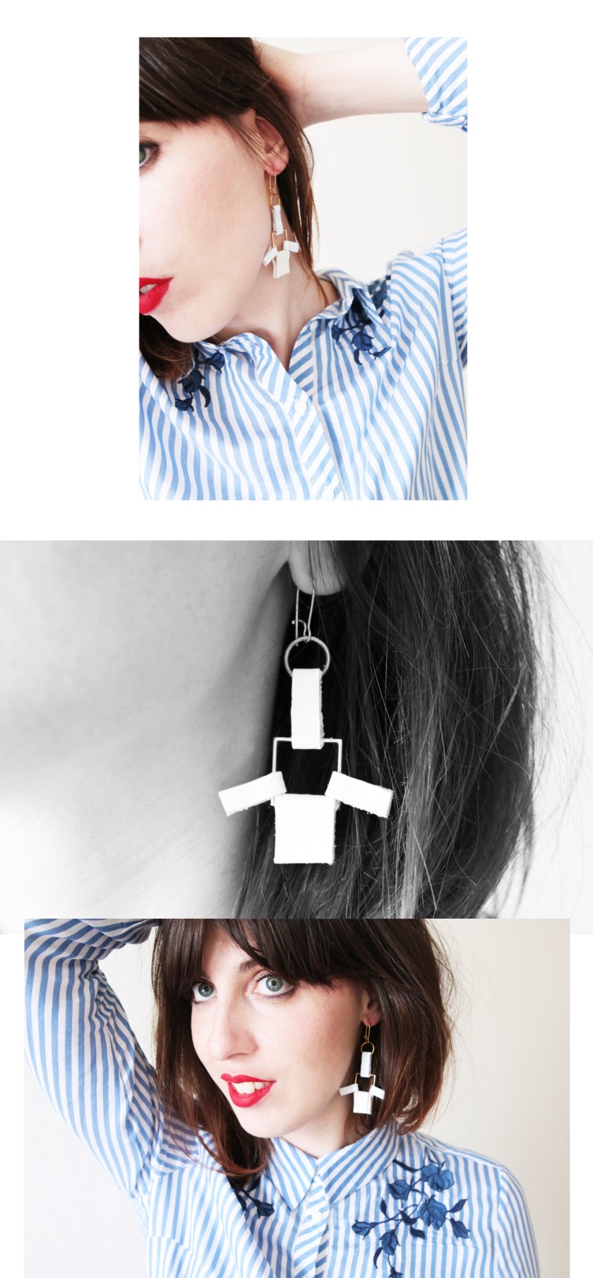 J’espère que vous profitez bien de ce long week end ! Ce grand week end est l’occasion de partir vers des contrées lointaines OU , de faire du DIY biensûr ! Si vous avez mis cela à votre programme voici une idée simple et facile à réaliser . Je vous propose aujourd’hui de réaliser des boucles d’oreilles graphiques en cuir blanc ! Pour cela il ne vous faudra pas grand chose juste une petite demi heure !