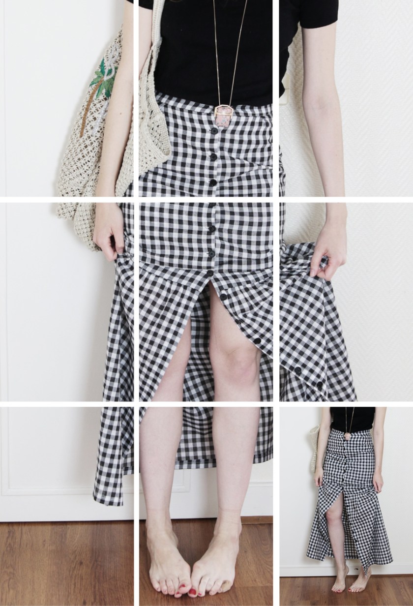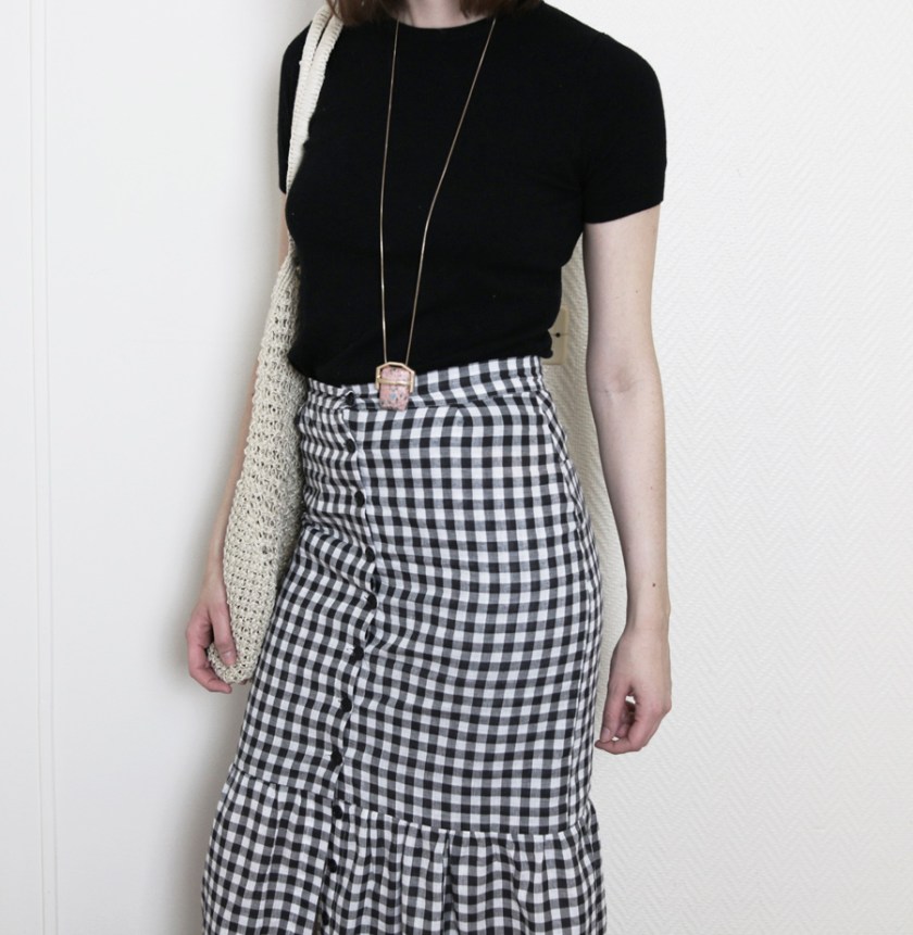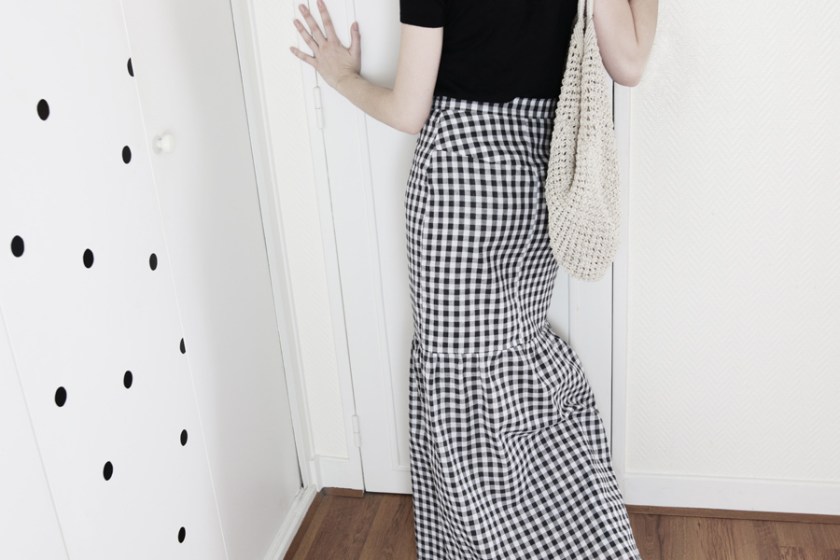 • Et voilà, j’ai une jupe longue en vichy taille haute, bien coupé 🙂