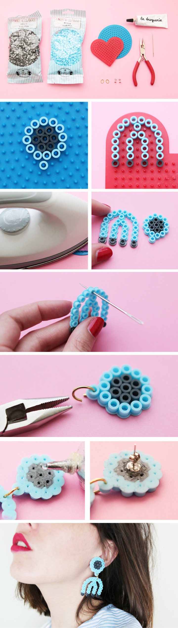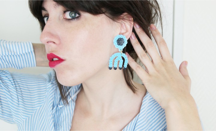 DIY : Des boucles d’oreilles mode en perles Hama bleus #tuto1