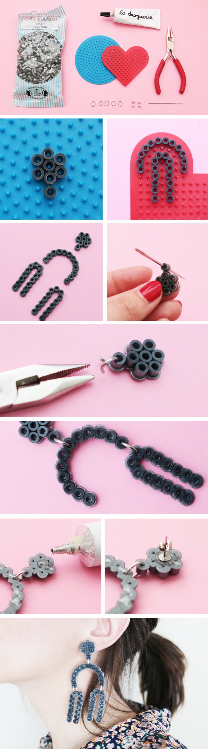 BOUCLES D’OREILLES MODE EN PERLES HAMA BLEUS #TUTO1 j’ai re-craqué sur ce jeux de loisir créatif que j’ai beaucoup aimé dans mon enfance. J’ai décidé donc de les utiliser pour réaliser des boucles d’oreilles tendances , les maxi boucles d’oreilles style mobile . On en a vus pas mal sur les défilés en métal assez graphique . Mais ne sachant pas sculpter le métal je me suis dis que les perles Hama étaient un bon moyen d’en réaliser dans le même esprit et très facilement ! Vous verrez, il ne faut pas beaucoup de matériel et pas une adresse hors paire !
