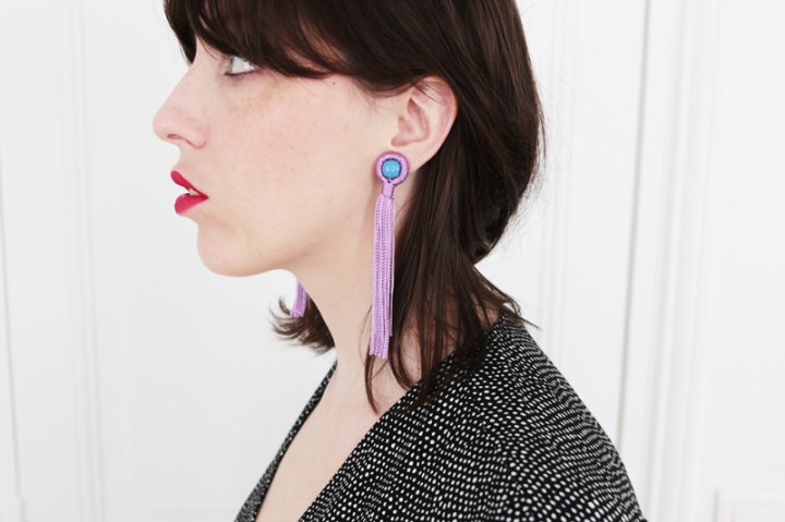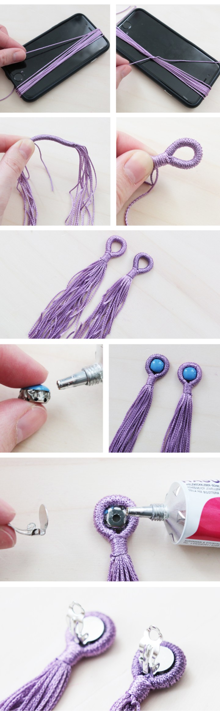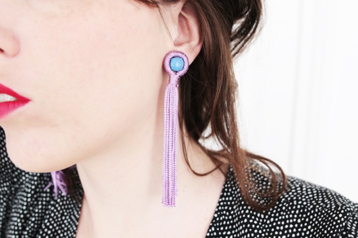 7• Et voilà tu as des boucles d’oreilles en fils viscose 🙂