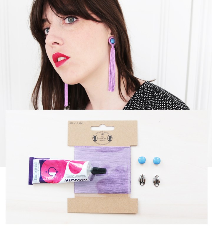 Me revoilà aujourd’hui avec un nouveau DIY bijoux ! Ces boucles d’oreilles sont faites à partir d’un fil très tendance actuellement, le fil viscose . Vous trouverez beaucoup de boucles d’oreilles et autres colliers avec des longues franges de ce fil ou bien des pompons. Je voulais faire un DIY avec ce fil depuis longtemps et c’est chez Sostrene Grene que j’en ai trouvé pour la première fois !