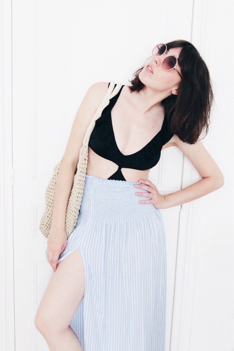 Une fois toutes les rangées faites, il te suffit de coudre bord à bord les deux côtés de ton rectangle pour créer y’a jupe , et voilà le tour est joué !