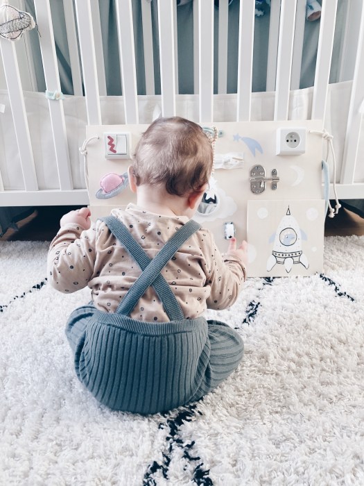 11. Il n’y a plus qu’a laisser Bébé découvrir ! Toujours sous votre surveillance bien sûr ! Mon petit Ulysse, lui, a adoré toute suite les roues et les éléments en feutrine, mais selon l’âge l’enfant s’intéressera à des éléments différents !