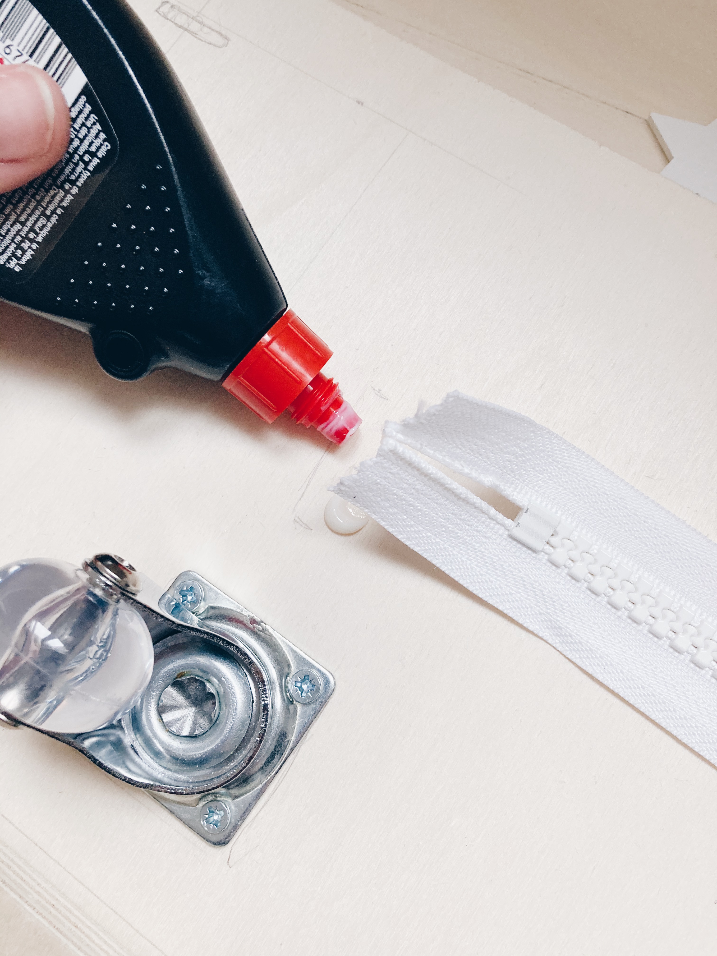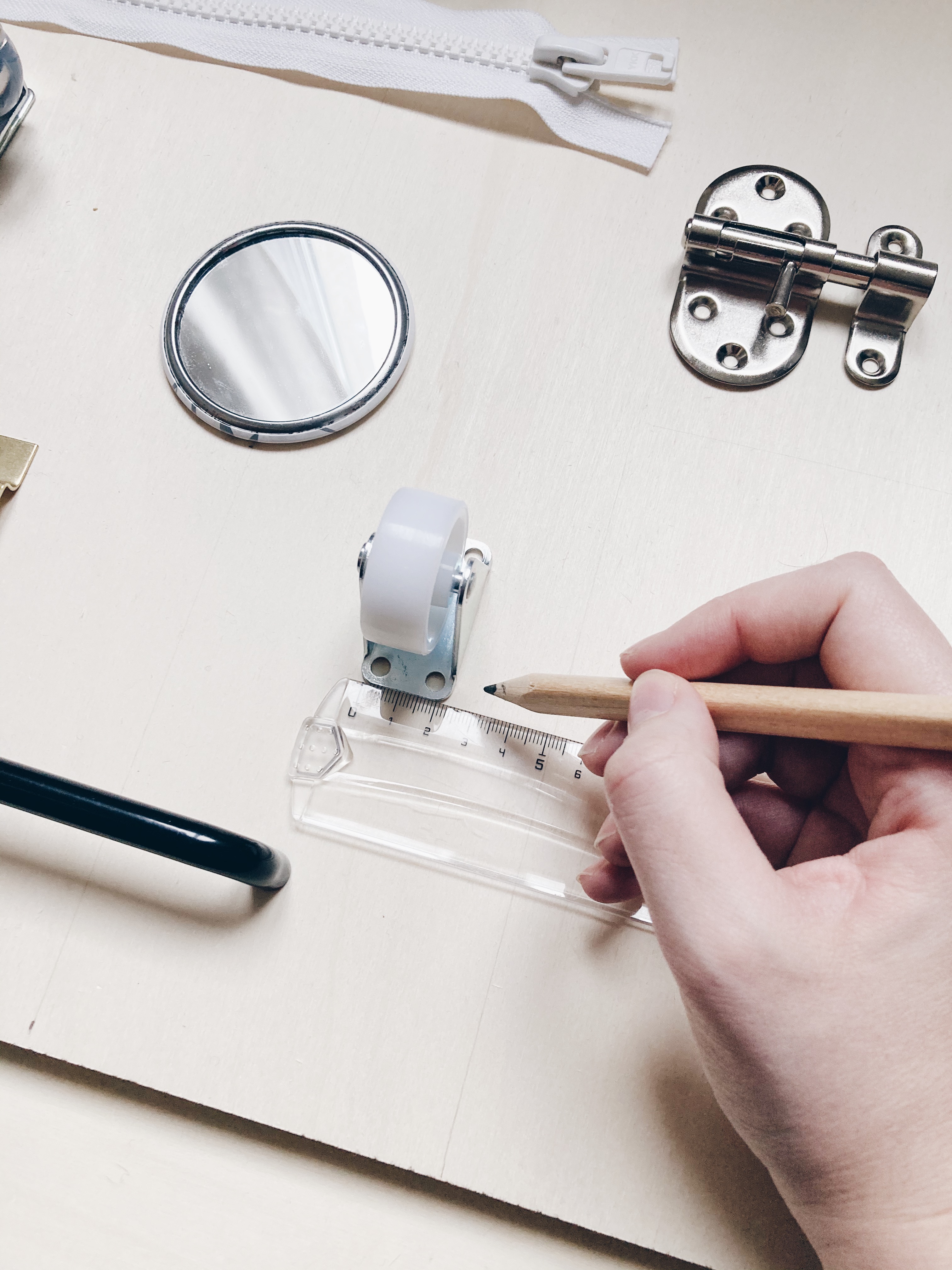 6. Coller le miroir et la fermeture éclair