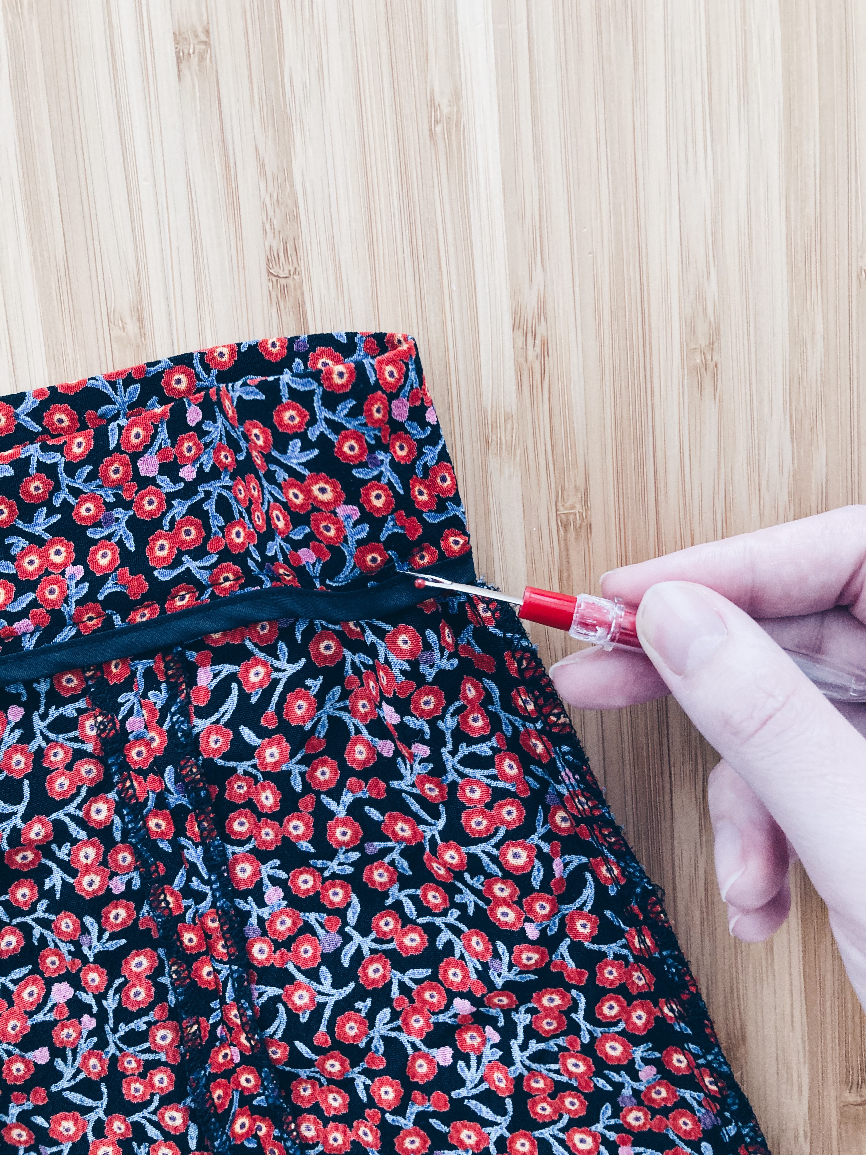 - Repasse ta couture et replie simplement la ceinture de la jupe et referme avec une petite couture invisible