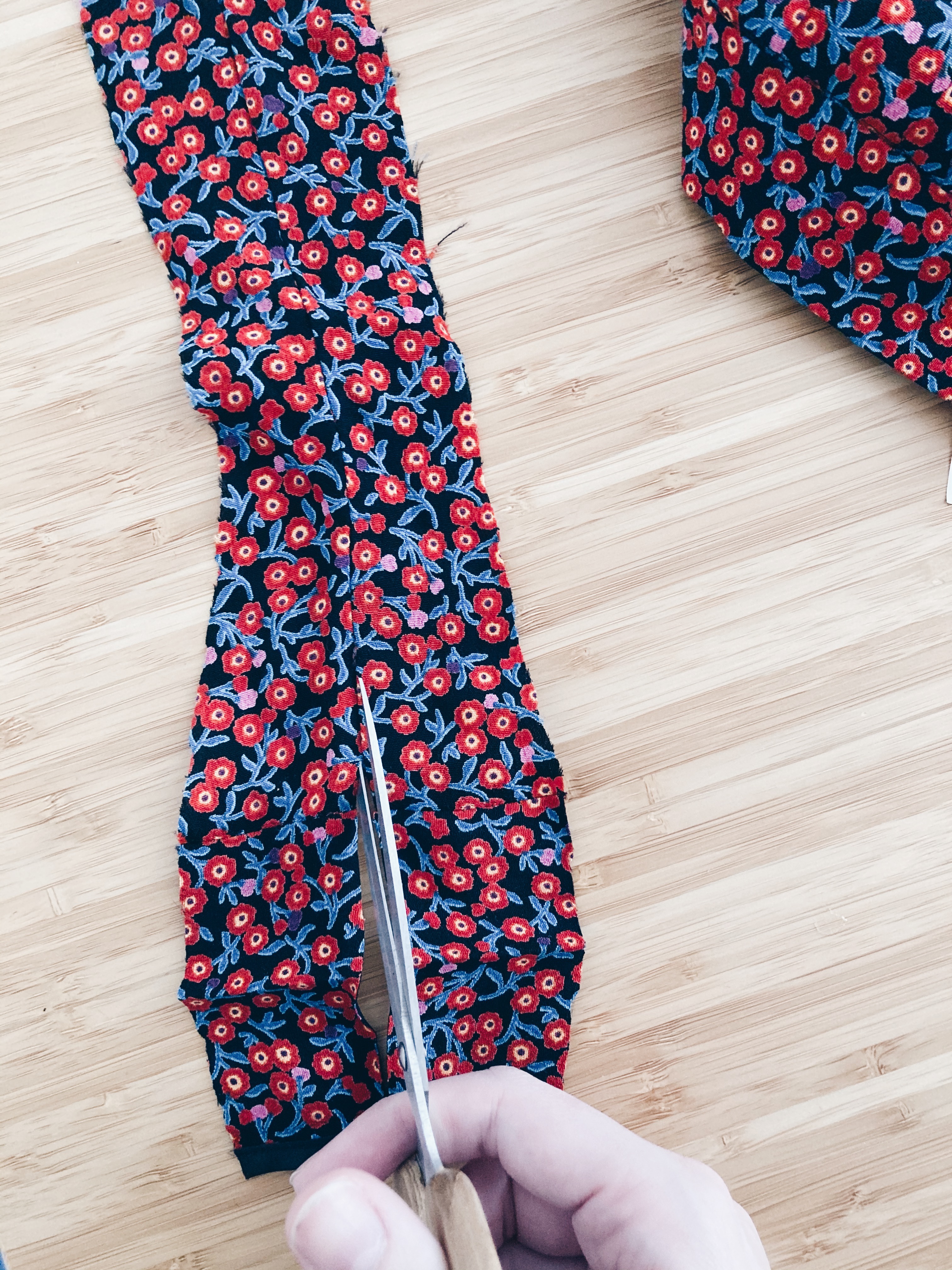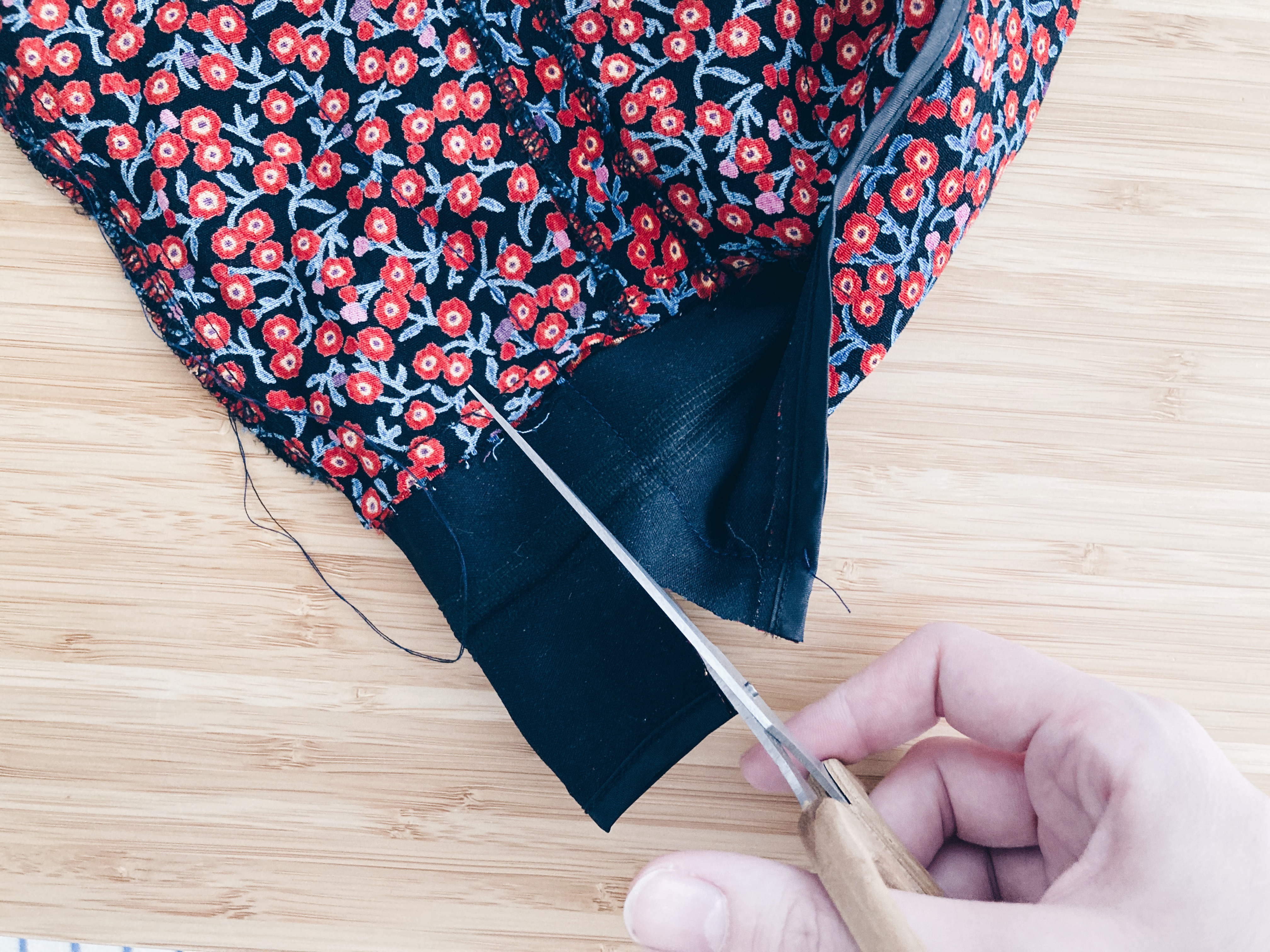 - Tu peux ensuite découper le surplus de tissu à 1cm environ de la couture