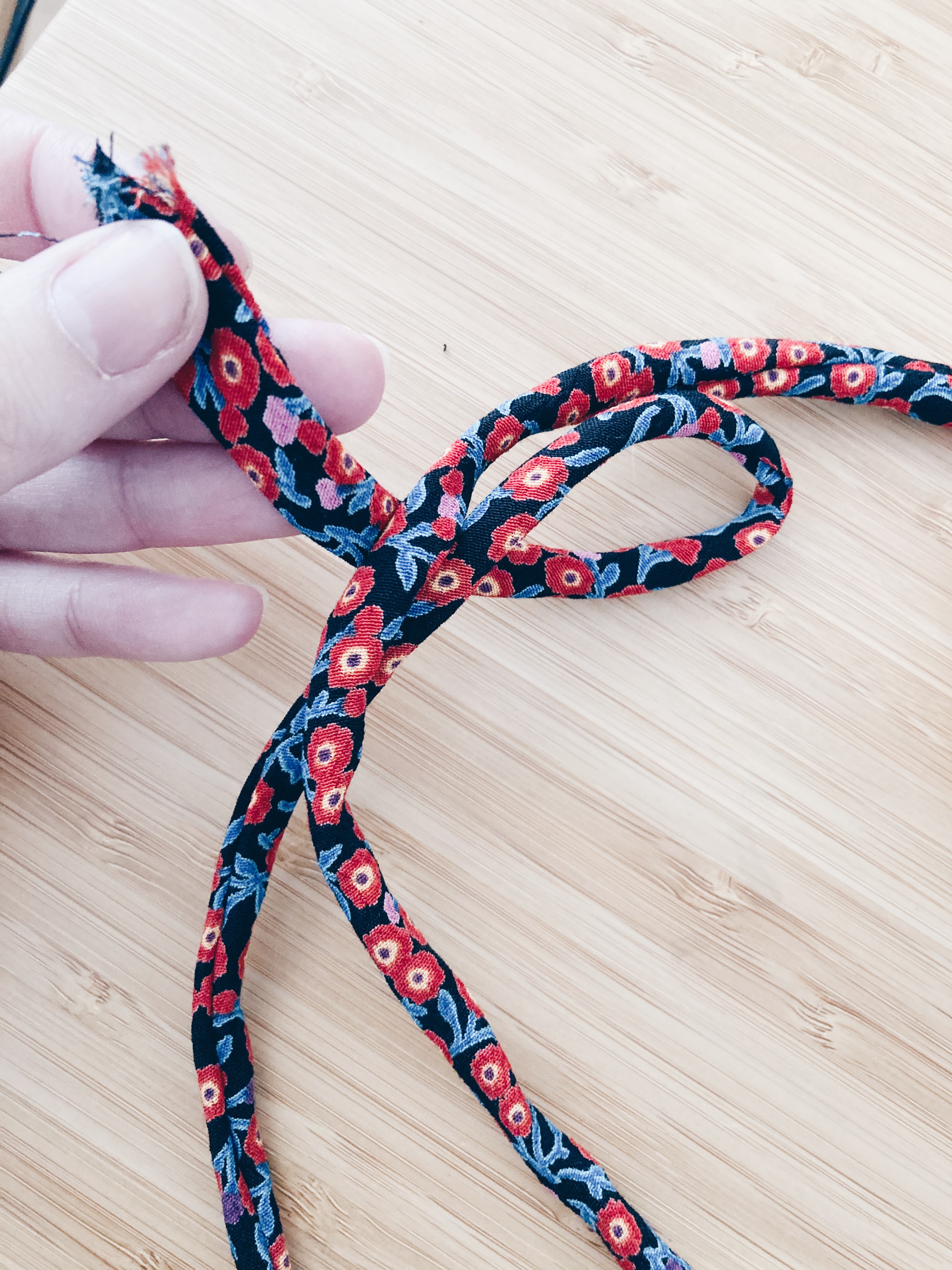 - Pour retourner les liens utilise une petite épingle à nourrice que tu attache à une extrémité et glisse dans le tube formé en tirant jusqu’à temps que la bride soit complètement retournée !