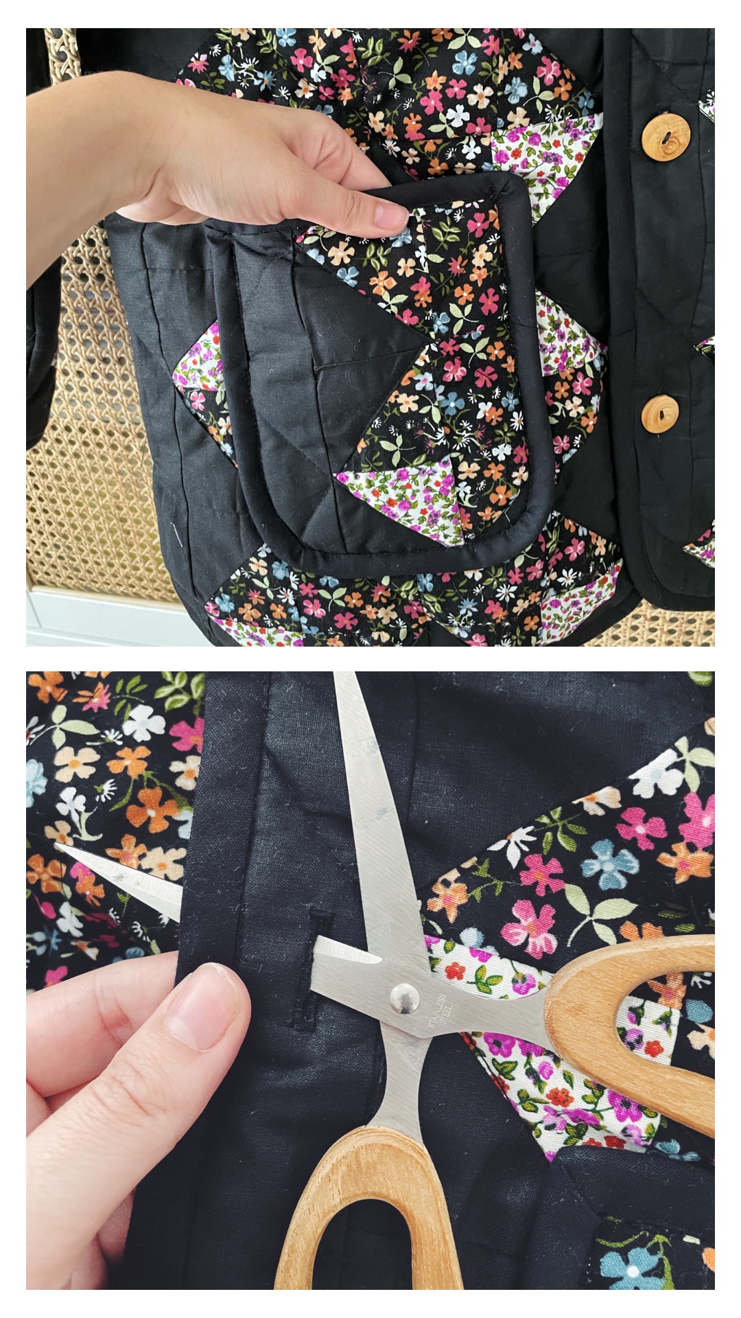 - Et voilà vous avez une veste patchworks faite main et à moindre coût ! 😉