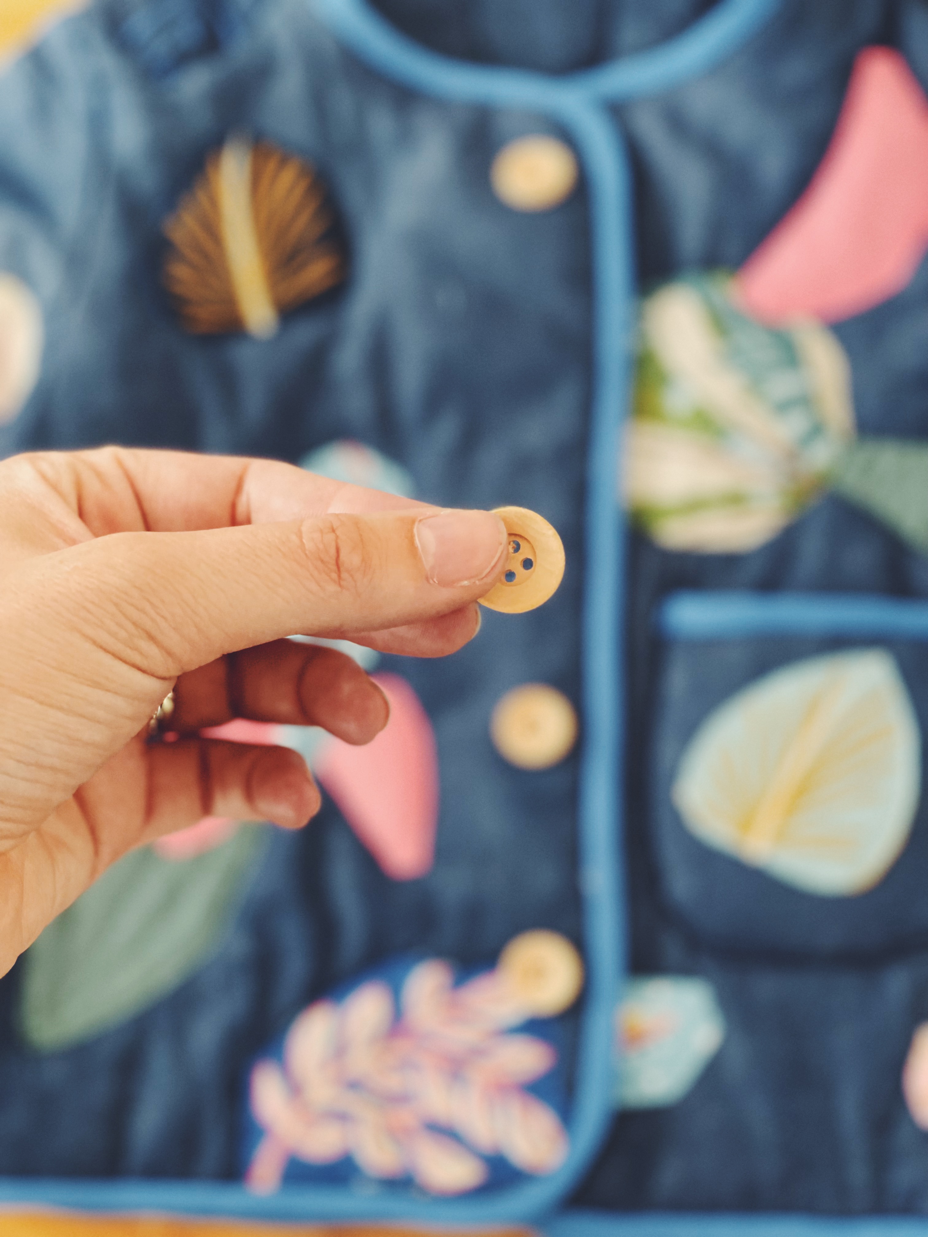 - Pour des jolies finitions créez une boutonnière à l’aide de 4 boutons en bois