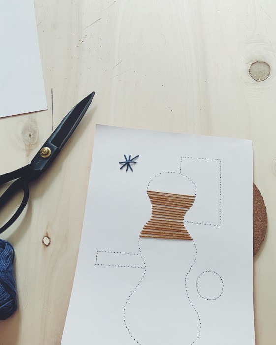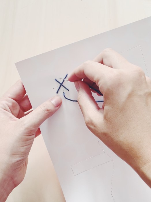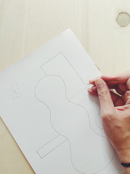 - Ensuite avé la pointe de ton aiguille perce des trous à espacement égal