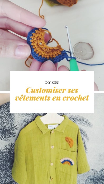 Hello girls ! Voici une petite idée pour personnaliser les vêtements de vos petits Kids adorés ! Créer des formes en crochet à coudre sous les vêtements