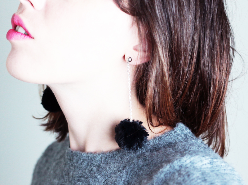 Et voilà ! tu as crée toi même tes boucles d’oreilles à pompon en fourrure !